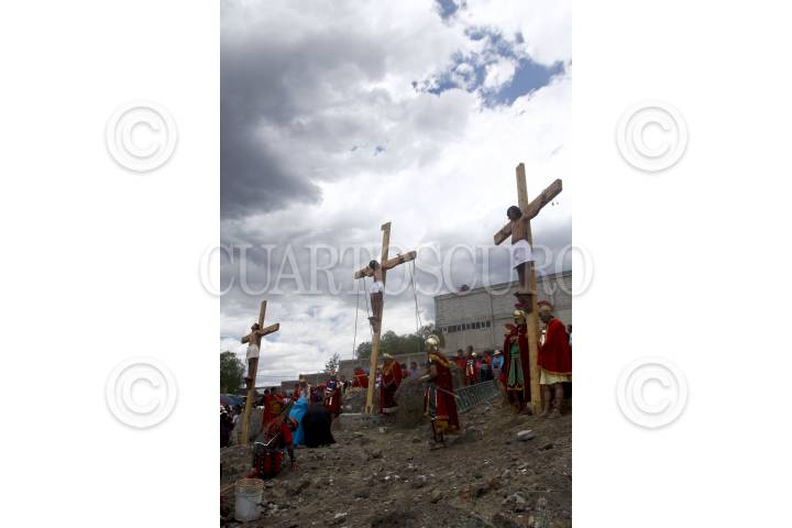 MÉXICO, D.F., 10ABRIL2009.- Diego Zirahuen Villagrán, quien interpretó a Jesús de Nazaret en el Vía Crucis de Iztapalapa, cumplió con el ritual al ser crucificado en el Cerro de la Estrella en la CLXVI representación. FOTO: MOISÉS PABLO/CUARTOSCURO.COM
