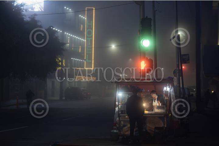 TIJUANA, BAJA CALIFORNIA, 19DIC2024.-Imágenes de la Zona Centro de Tijuana que registró la noche del miércoles y las primeras horas de este día una densa neblina, acompañada de un ambiente frío, reduciendo la visibilidad y generando una atmósfera invernal. OMAR MARTÍNEZ NOYOLA/ CUARTOSCURO.COM