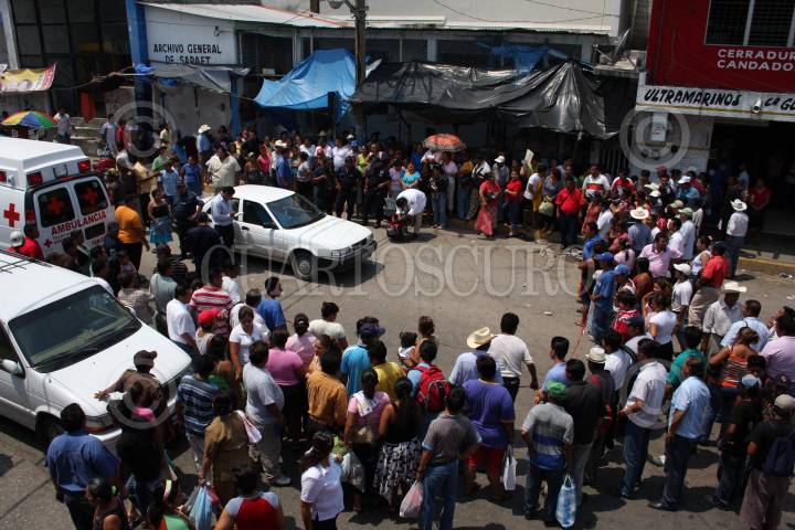 VILLAHERMOSA, TABASCO, 02MAYO2008.- Un automovilista fallece en el interior de su vehiculo cuando el occiso salia del cajón del estacionamiento. Sin embargo las autoridades de la Procuraduria General de Justicia de la dirección de Periciales no cumplen con los requisitos del levantamiento del cadaver, y sin aplicarle la necropsia de ley dejan que se lo lleve una funeria particular tras pasar mas de horas de permanecer el difunto bajo el insesante sol. FOTO: MARCO POLO GUZMÁN HERNÁNDEZ/CUARTOSCURO.COM
