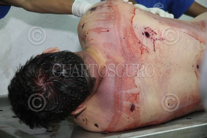 JALPA DE MÉNDEZ, TABASCO, 15NOVIEMBRE2010.- Ramón Perez Roman de 27 años y Víctor Chan de 22 años de edad perdieron la vida el día de ayer de varios impactos de arma de fuego cuando presuntamente versiones de la autoridad, no se detuvieron en un reten militar al circular en la carretera interestatal Colmalcalco - Jalpa de Méndez a bordo de una Camioneta. En el lugar se encontraban, elementos de la Armada de México, Policía Federal preventiva y Estatal de caminos. Luego del incidente, los cuerpos fueron trasladados al anfiteatro del panteón municipal para que se les realizara la necropsia correspondiente, los familiares dieron consentimiento para realizar el trabajo periodístico con la finalidad que se esclarezca el suceso. El resultado de la necropsia aplicadas por la dirección de Periciales en la Procuraduría General de Justicia local revela que perdieron la vida con un proyectil de arma de fuego alojada en la pierna izquierda que provoca una hemorragia, a lo que amigos y familiares de los fallecidos alzan la voz y piden la intervención del presidente Felipe Calderón Hinojosa y la cooperación de las autoridades en los derechos humanos para que intercedan por ellos. FOTO: MARCO POLO GUZMÁN HERNÁNDEZ/CUARTOSCURO