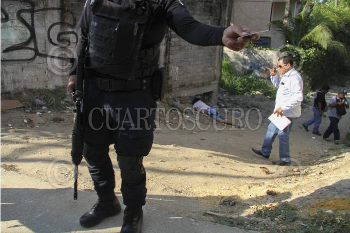 ACAPULCO, GUERREO, 29MARZO2015.- Una persona de unos 20 a 25 de edad fue asesinada en la colonia La Mica de la carretera principal. Al lugar llegaron elementos de la gendarmería y policías ministeriales quienes realizaron las indagatorias. En el lugar fue localizado un casquillo percutido. Además, al parecer le dieron un balazo en la frente. El cuerpo fue trasladado al servicio médico forense para practicarle la necropsia de ley y que los familiares puedan identificar el cuerpo que esta en calidad de desconocido. FOTO: BERNANDINO HERNÁNDEZ /CUARTOSCURO.COM