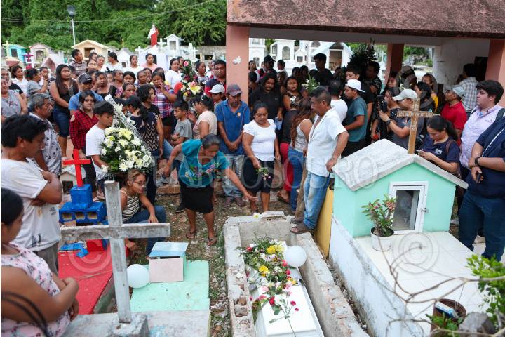 Familiares, amigos y vecinos de la pequeña Aitana D., niña quien falleció prensada en el elevador de un hospital del IMSS de Playa del Carmen, le dieron el último adiós, en su hogar, en Tinum, ahí sus padres exigieron castigo a los responsables de lo que calificaron como negligencia por parte del Seguro Social.