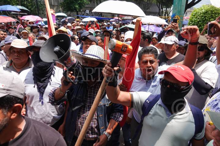 CIUDAD DE MEXICO, 04JUNIO2025.- Representantes de diferentes secciones de la Coordinadora Nacional de Trabajadores de la Educación (CNTE) entraron a la Secretaría de Gobernación (Segob) para sostener la tercera reunión te negociaciones con el gobierno federal tras 20 días de protestas.  FOTO: GALO CAÑAS/CUARTOSCURO.COM
