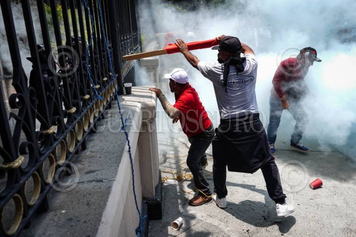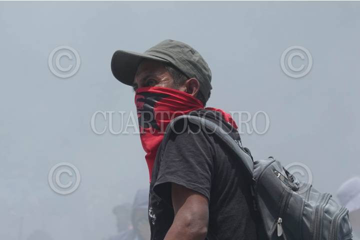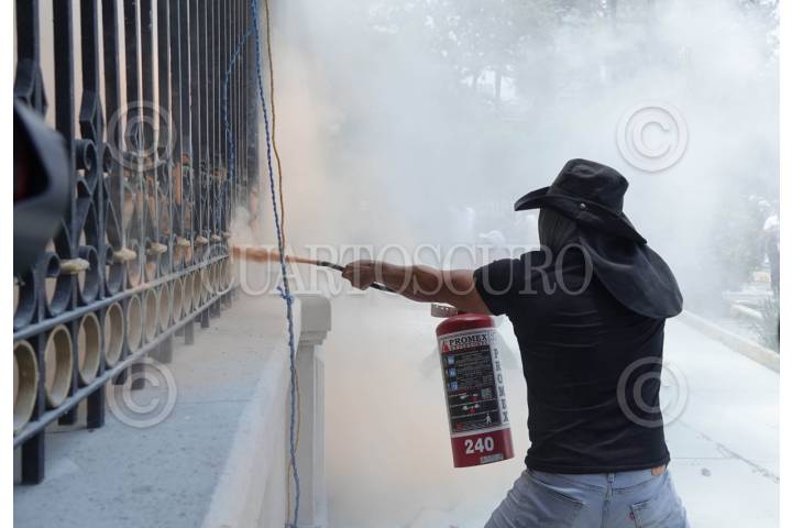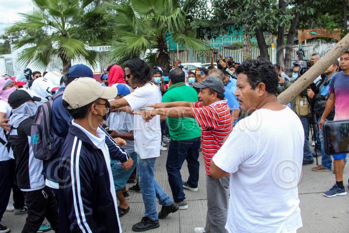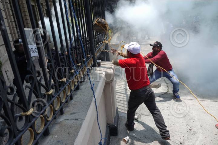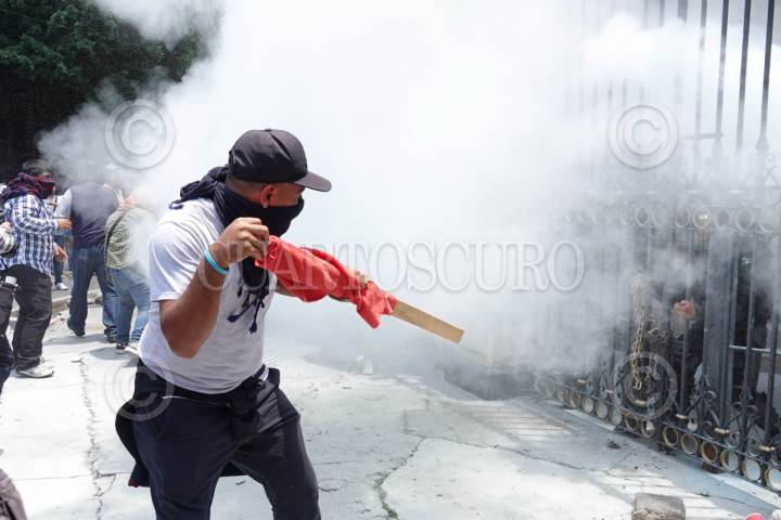 CIUDAD DE MEXICO, 04JUNIO025.- Maestros de Guerrero durante conato de enfrentamiento en las inmediaciones de Segob en el desarrollo de la tercera mesa de negociación con autoridade federales.  FOTO: GALO CAÑAS/CUARTOSCURO.COM