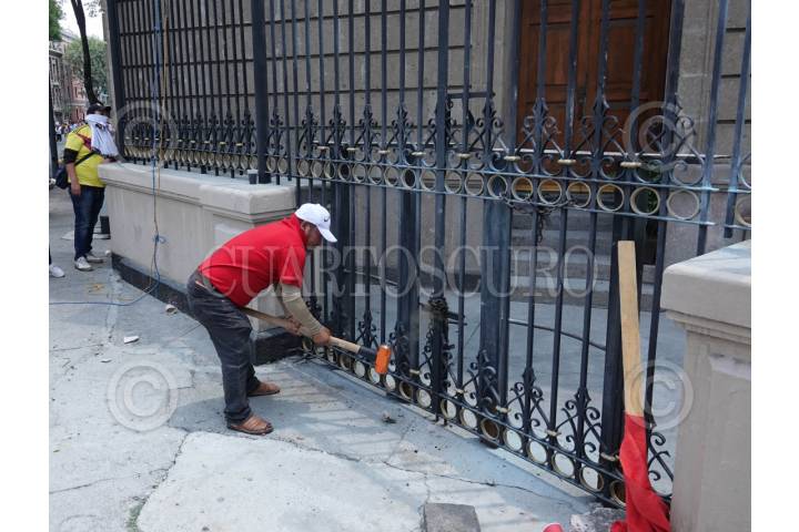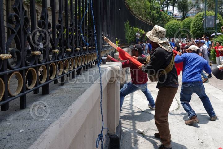 CIUDAD DE MEXICO, 04JUNIO2025.- Integrantes de la Coordinadora Nacional de Trabajadores de la Educación (CNTE) sostienen un cerco alrededor de los accesos de la Secretaría de Gobernación (Segob) durante la tercer Mesa de negociación entre docentes y autoridades federales.  FOTO: GALO CAÑAS/CUARTOSCURO.COM