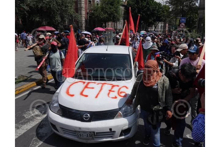 CIUDAD DE MEXICO, 04JUNIO025.- Tras protestar en la Secretaría de Gobernación, maestros de Guerrero, integrantes de la CETEG, marcharon de regreso al Zócalo capitalino en dónde mantienen su plantón.  FOTO: GALO CAÑAS/CUARTOSCURO.COM