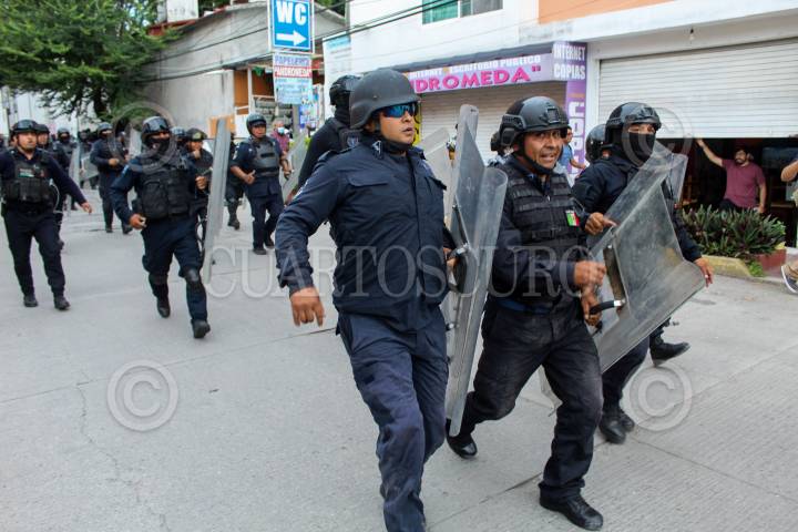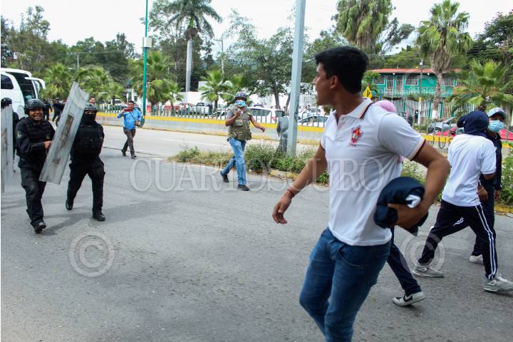 Equipo antimotines del estado de Guerrero lograron liberar los carriles centrales del bulevar Vicente Guerrero que permanecían bloqueadas por normalistas integrantes de la FUNPEG.