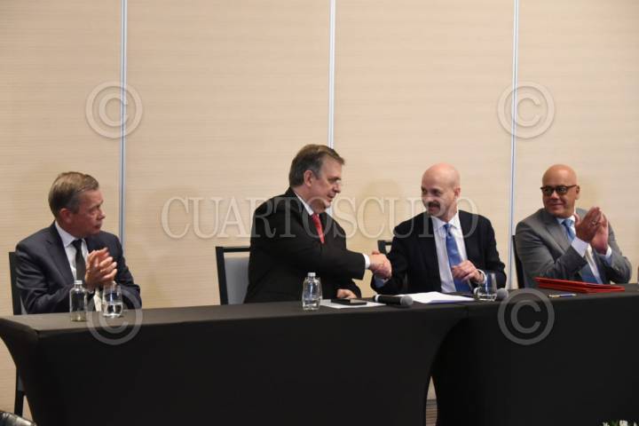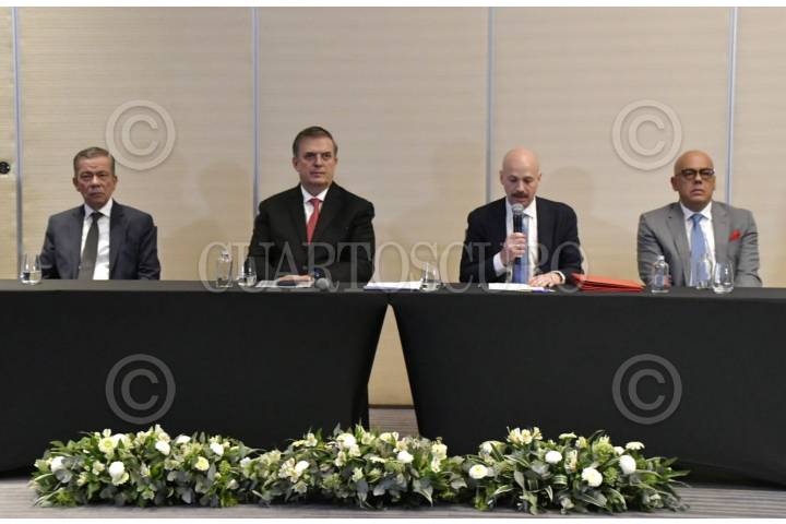 Gerardo Blyde, Marcelo Ebrard, Dag Nylander y Jorge Rodríguez encabezaron la firma y reanudación del diálogo del proceso de diálogo y negociación entre el Gobierno de la República Bolivariana de Venezuela y la Plataforma Unitaria de Venezuela.