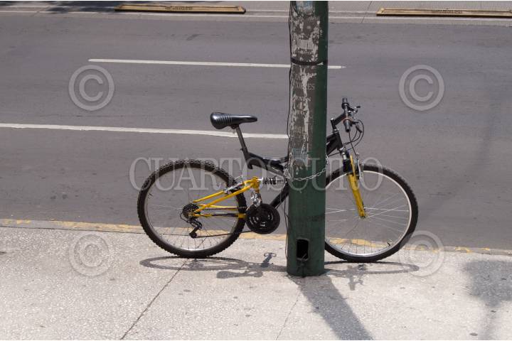 MÉXICO, D.F., 16MAYO2012.- Una bicicleta negra encadenada sobre avenida insurgentes casi esquina con Valentín Campa frente a la Torre Murano. FOTO: PEDRO VALTIERRA /CUARTOSCURO.COM