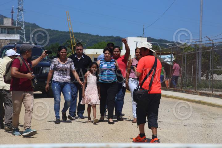 ACAPULCO, GUERRERO, 22SEPTIEMBRE2018.- Nestora Salgado, senadora de la república, visitó el Penal de las Cruces en Acapulco, con el fin de visitar a los policías comunitarios de los bienes Comunales de Cacahuatepec que se encuentran presos desde el mes de enero. Al salir, la candidata fue recibida por mujeres familiares de los presos, quienes le hicieron la petición de la salida de sus familiares. FOTO: CARLOS ALBERTO CARBAJAL /CUARTOSCURO.COM