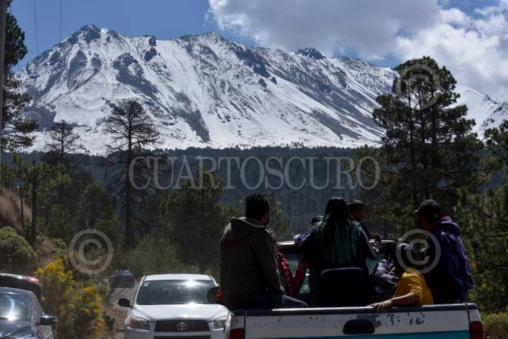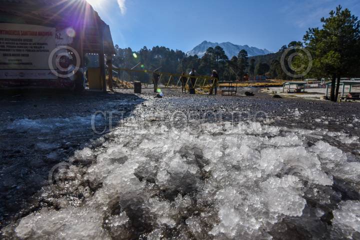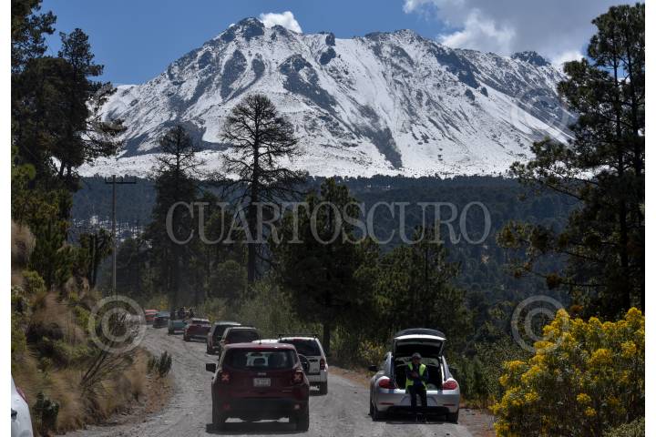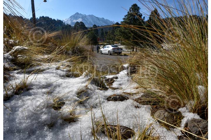 El volcán Xinantécatl amaneció con una capa de granizo a unos días de que entre la Primavera, varios turistas acudieron a las faldas del Nevado a disfrutar de este espectáculo natural.