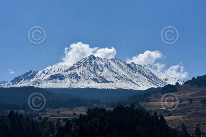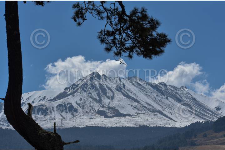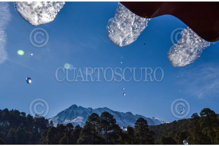 El volcán Xinantécatl lució una capa de granizo esta mañana después de las lluvias que se han registrado en el Valle de Toluca.