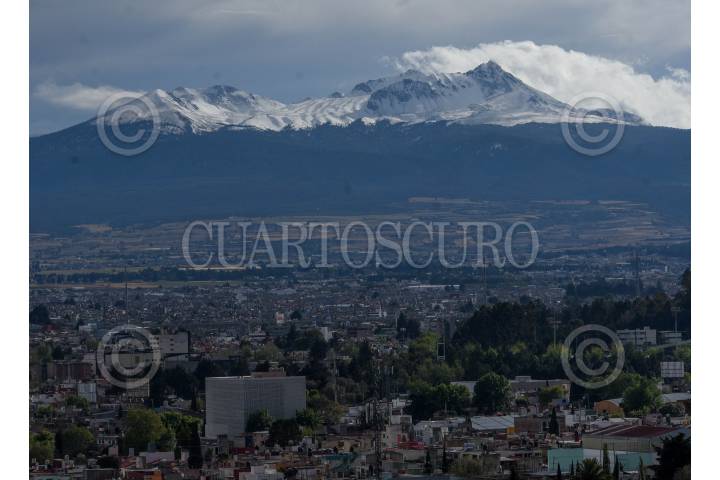 El Nevado de Toluca luce blanco después de la lluvia que se registró la noche del miércoles.