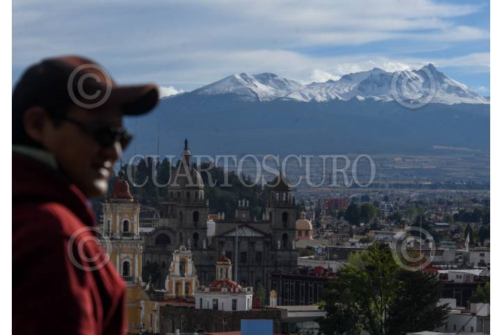 TOLUCA, ESTADO DE MÉXICO, 18FEBRERO2024.- Vista del Volcán Xinantécatl desde la ciudad de Toluca después de la nevada que se registrará debido al frente frío número 35 y la masa de aire ártico que prevalece, se pudo disfrutar de esta panorámica. FOTO: CRISANTA ESPINOSA AGUILAR /CUARTOSCURO.COM