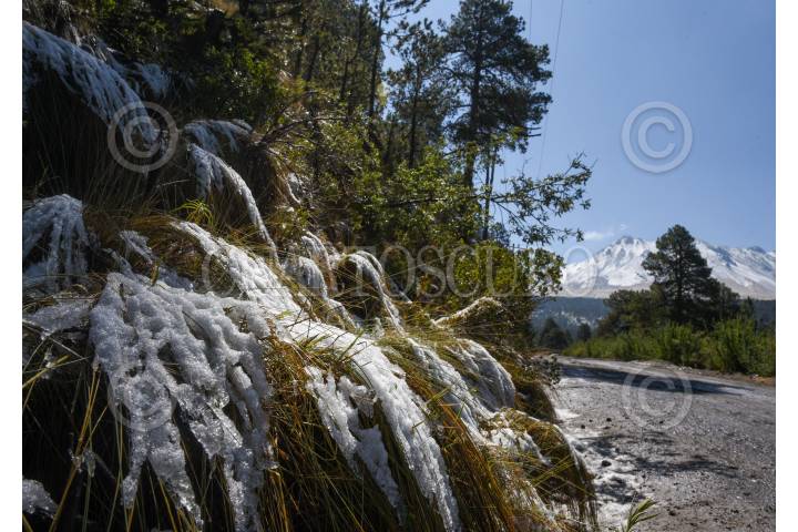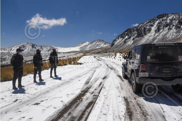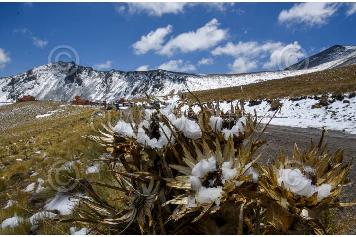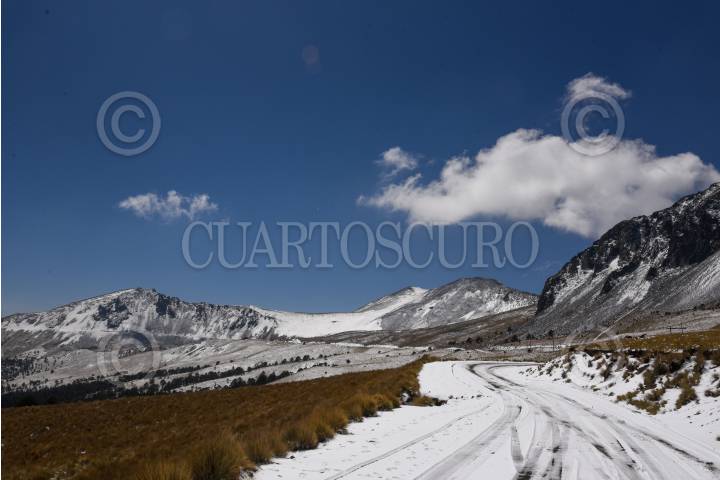 Paisaje del Nevado de Toluca, después de las bajas temperaturas que se registraron en el Valle de Toluca se visitó con una delgada capa blanca de nieve.
