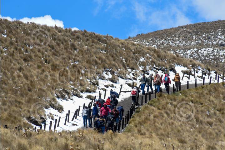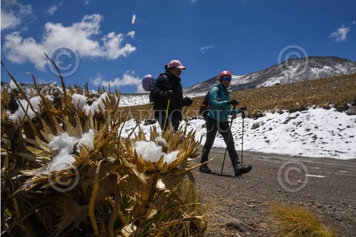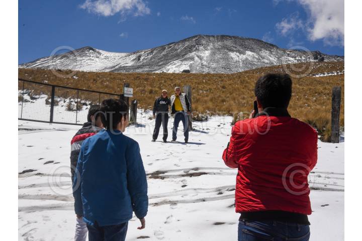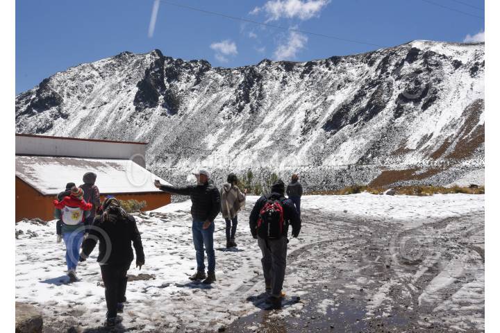 Un paisaje nevado se pudo observar en el Volcán Xinantécatl lo que atrajo a muchos visitantes este viernes después de las lluvias registradas en el Valle de Toluca.