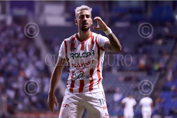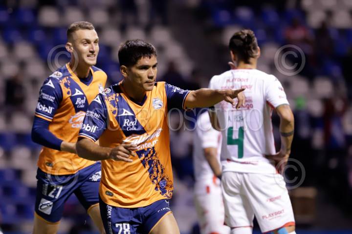 Martín Barragan en festejo durante el partido entre el Club Puebla y los Rayos del Necaxa correspondiente a la jornada 9 del torneo Apertura 2022 de la Liga BBVA MX.