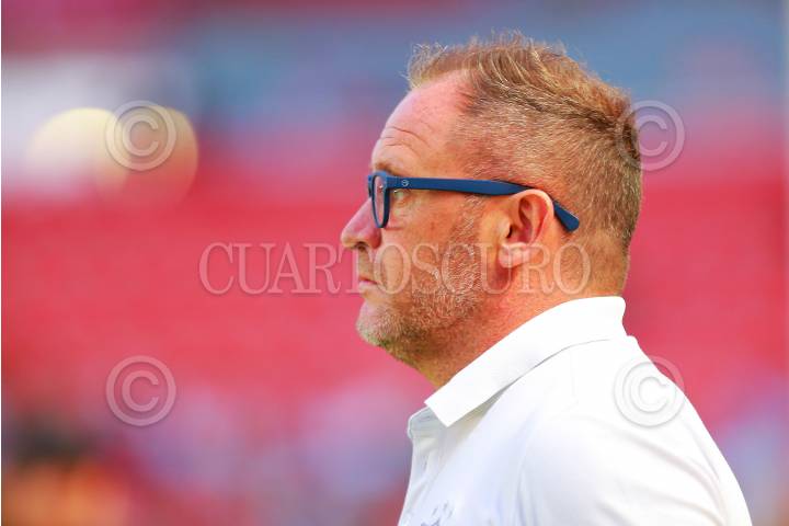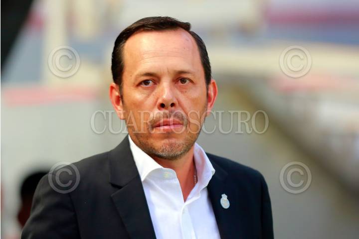 Andres Lillini, director técnico del Necaxa durante el juego de la jornada 13 del Torneo Clausura 2023 de la Liga BBVA MX en el Estadio Victoria.