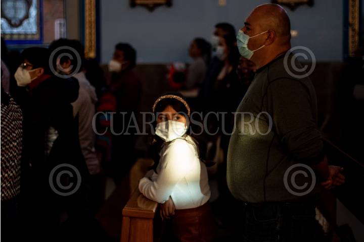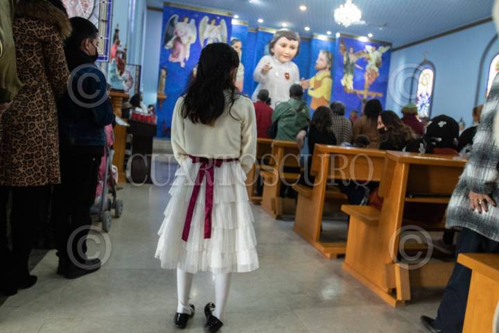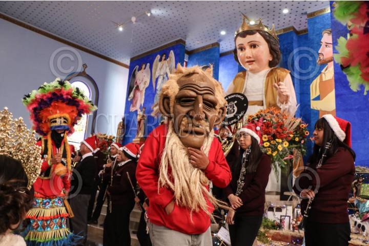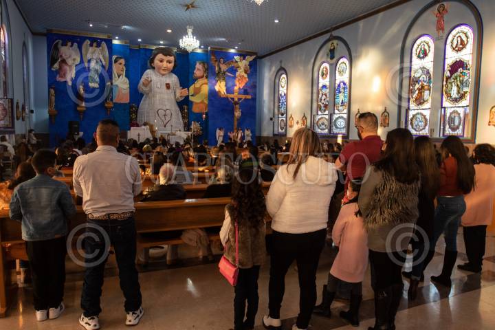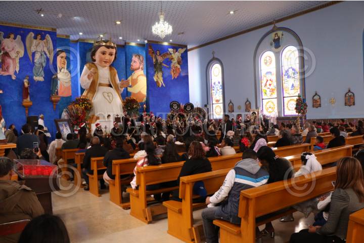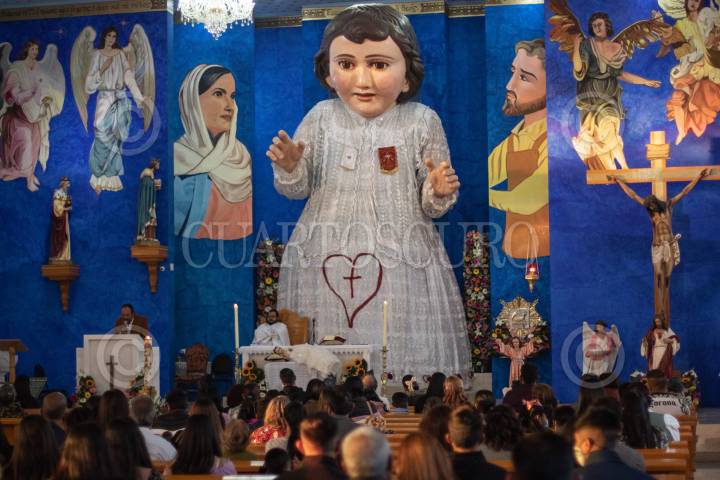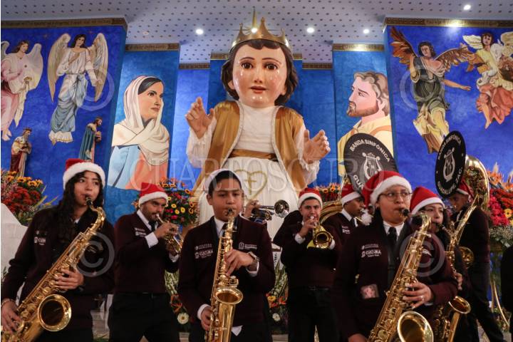 GUADALUPE, ZACATECAS, 06ENERO2024.- Devotos del Niño Dios festejaron con una peregrinación, danzas y músicas en la comunidad de Zoquite, en dónde se encuentra la figura mas grande del mundo, con más de seis metros de altura. Los festejos y la misa se realizaron en la parroquia del la Epifania del Señor en el centro de la comunidad en donde cientos de personas visitaron al Santo Niño. FOTO: ADOLFO VLADIMIR /CUARTOSCURO.COM