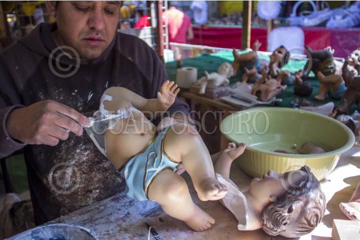 MÉXICO, D.F., 29ENERO2013.- Cientos de personas acudieron a los talleres de reparación de Niños Dios ubicados en la calle de Talavera en Centro de la Ciudad donde también se vende ropa y accesorios necesarios para el próximo 2 de febrero Día de la Candelaria, día en que se llevan a bendecir ya que según la biblia es el día en que el Niño Jesús fue presentado en el Templo por sus Padres. FOTO: ENRIQUE ORDÓÑEZ /CUARTOSCURO.COM