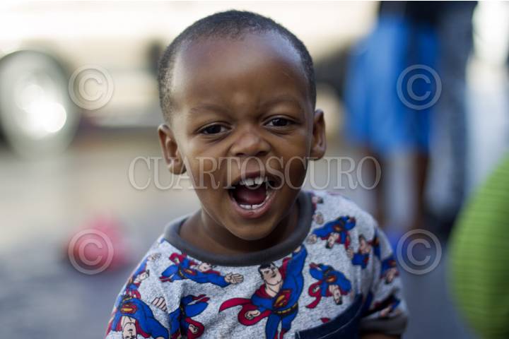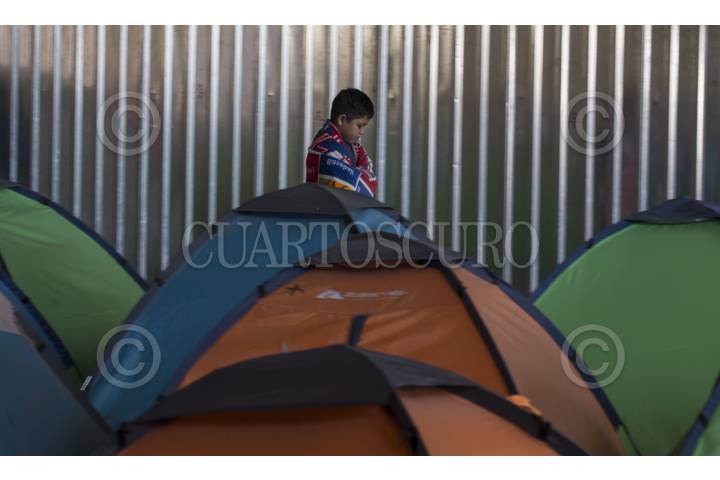 Un niño haitiano ocupa el campamento en las afueras de casa INDI para migrantes desde hace tres semanas.