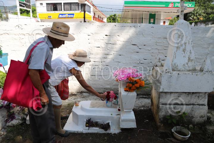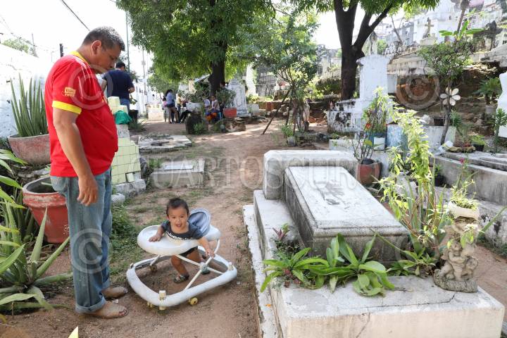 ACAPULCO, GUERRERO, 01NOVIEMBRE2018.- En el panteón de San Francisco, ubicado en la calzada Pie de la Cuesta, decenas de personas se dieron cita para limpiar, acompañar y llevar flores a sus difuntos, en el marco de la celebración del Día de Muertos, aquí se encuentra la tumba del llamado Niño Milagroso, el cual es una visita obligada para quienes visitan este panteón, mencionó uno de los asistentes que los creyentes acuden a dejar un regalo al mencionado niño, llamado Raúl González, fallecido el 2 de febrero de 1933 con 10 meses de edad, cuando les cumple el milagro solicitado. El panteón de San Francisco es el más antiguo de Acapulco, donde se encuentran lápidas desde hace más de un siglo y medio. Una, de las tumbas emblemáticas es la erigida, en homenaje a las Víctimas del 14 de febrero de 1909, fallecidas en el incendio del Teatro Flores de Acapulco. Así como la del cónsul americano de origen suizo, John Sutter, entre otras, muchas de las cuales permanecen abandonadas y olvidadas por sus familiares. FOTO: BERNANDINO HERNÁNDEZ /CUARTOSCURO.COM