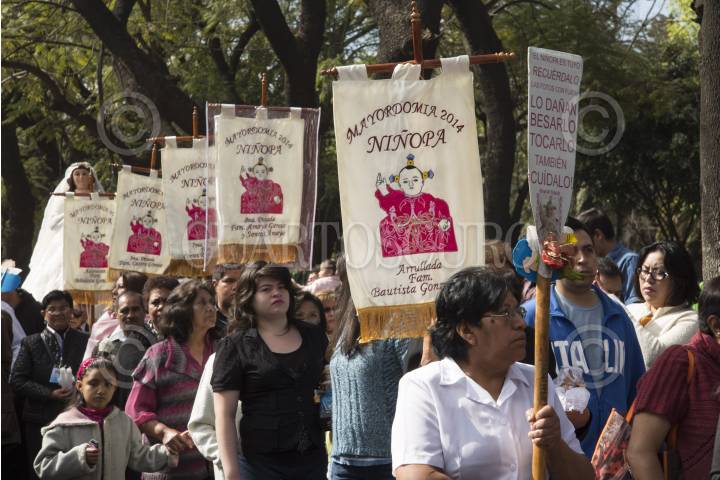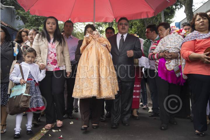 CIUDAD DE MÉXICO, 02FEBRERO2024.- Fieles de Xochimilco acudieron a la Catedral de Xochimilco (San Bernardino de Siena) para presenciar el cambio de mayordomía del Niñopa. La familia saliente Méndez Flores hizo entrega a la familia Trigueros Olivares, quienes llevan esperando 39 años para recibir al santo. Esta tradición cuenta con más de 400 años de antigüedad. FOTO: GALO CAÑAS/CUARTOSCURO.COM