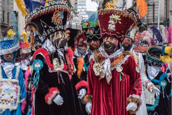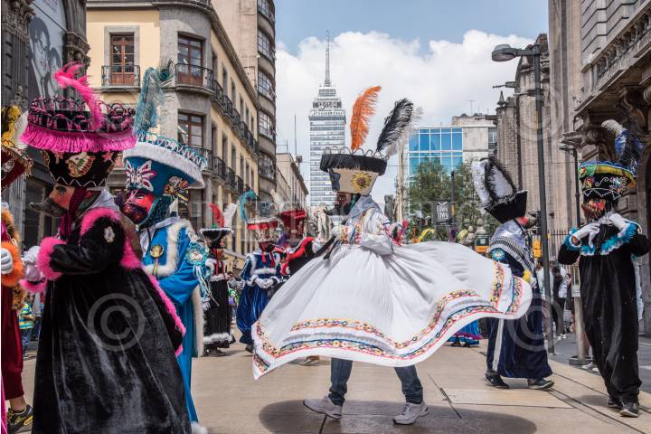 CIUDAD DE MÉXICO, 23AGOSTO2017.- Fieles devotos al Niño de Jesús de Niñopa de Xochimilco, danzaron con atuendos tradicionales sobre la avenida Francisco I. Madero del Centro Histórico. FOTO: MARIO JASSO /CUARTOSCURO.COM