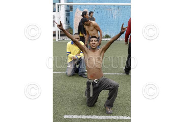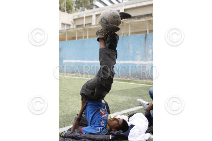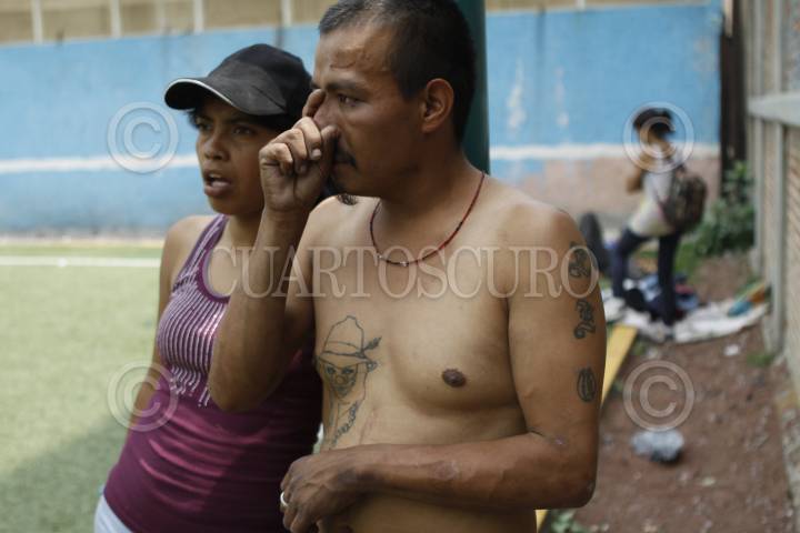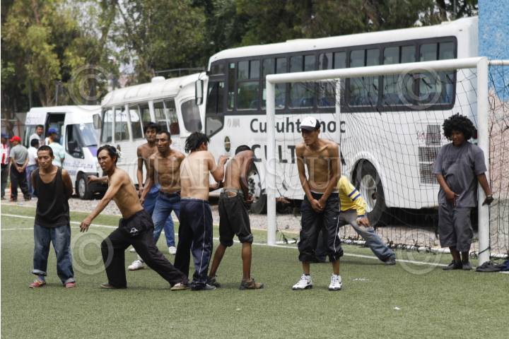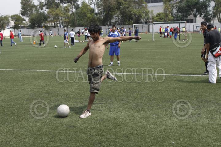 MÉXICO, D.F., 25ABRIL2014.- Se jugó el juego del honor en las canchas del deportivo Cuauhtémoc entre las escuadras conformadas por las personas que viven en situación de calle de la calle de Artículo 123, recientemente retirados del lugar, y los que viven en las inmediaciones del Teatro Blanquita en el centro de la capital, aunque los equipos tenían sus diferencias los de la Conchita, como se hacía llamar los que habitan en la inmediaciones del Blanquita, llamaron al juego limpio promesa que cumplieron a cabalidad, aunque fueron derrotados 1-0. Al 4to Mundialito de Fútbol Cuauhtémoc asistieron decenas de personas que a diario viven en la calle pero que para este día se ponen los tacos para dar la cara por su barrio, por su esquina, y como en todas las historias épicas siempre hay historias de amor, riñas que se resuelven a golpes, pero sobre todo de compañerismo, de respeto a las familias conformadas en las cuales la sangre nada tiene que ver, sino familias que se amalgaman con las situaciones de vida que viven a diario. FOTO: MOISÉS PABLO /CUARTOSCURO.COM