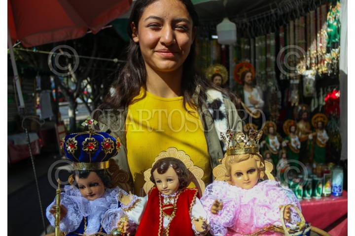 TOLUCA, ESTADO DE MÉXICO, 30ENERO2024.- Comerciantes de temporada instalados en el Mercado Juárez de Toluca continúan vistiendo las imágenes del Niño Dios para el festejo del Día de la Candelaria el próximo 2 de febrero, ofreciendo diferentes opciones de vestimenta desde los tradicionales mamelucos, ropones o trajes especiales, las ventas no han sido como esperaban, pero poco a poco van recuperándose sobre todo después de pandemia. FOTO: CRISANTA ESPINOSA AGUILAR /CUARTOSCURO.COM