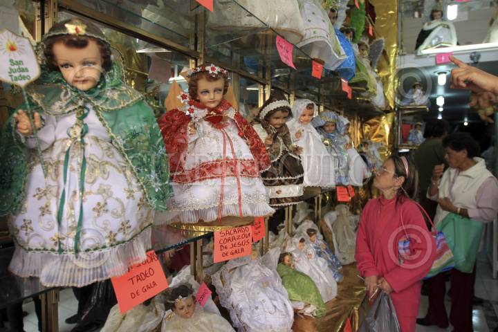 Católicos oaxaqueños acuden al mercado Benito Juárez para vestir a sus Niños Dioses con motivo del Día de la Candelaria.