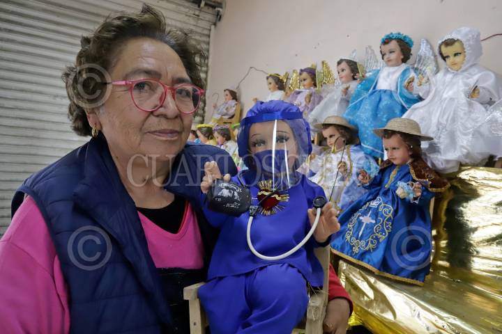 Para la celebración del Día de la Candelaria los poblanos han optado por vestir a sus niños dioses de Niño Doctor y Niño Cirujano, que vienen con cubrebocas y careta.