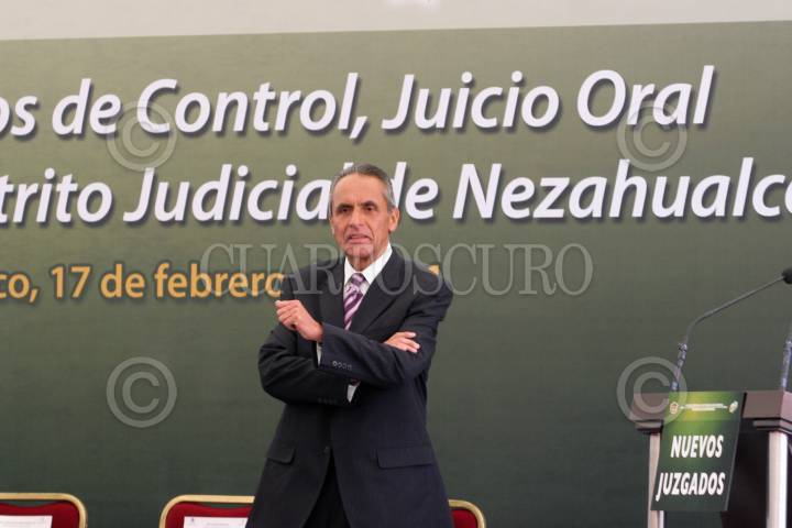 NEZAHUALCOYOTL, ESTADO DE MÉXICO, 16FEBRERO2011.- David Garay, comisionado de la Agencia de Seguridad Estatal, durante la inauguración de los juzgados de control de juicio oral y de ejecución de sentencias del distrito judicial de Nezahualcóyotl. FOTO: SAÚL LÓPEZ/CUARTOSCURO.COM