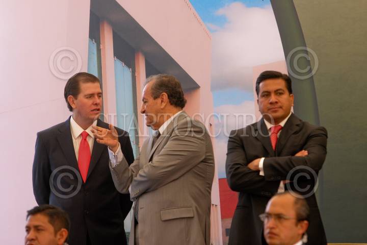 NEZAHUALCOYOTL, ESTADO DE MÉXICO, 16FEBRERO2011.- Alfredo Castillo Cervantes, procurador del Estado de México platica conMarco Antonio Gómez, Comisionado de Derechos Humanos mexiquense, durante la inauguración de los juzgados de control de juicio oral y de ejecución de sentencias del distrito judicial de Nezahualcóyotl. FOTO: SAÚL LÓPEZ/CUARTOSCURO.COM