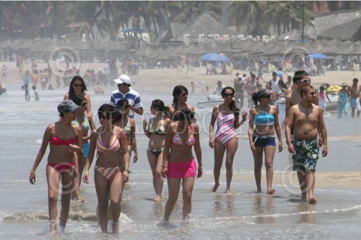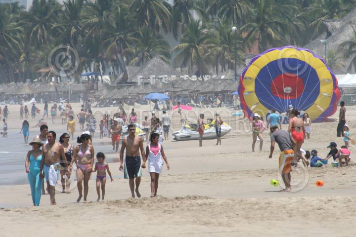 IXTAPA, ZIHUATANEJO 03MAYO2009.- A pesar de la alerta sanitaria decretada por el Gobierno de la República en todo el país, miles de turistas nacionales abarrotaron las playas de Ixtapa que alcanzó una ocupación hotelera, ayer, del 80.7 por ciento. En Zihuatanejo se tiene un reporte de ocupación del 53.2 por ciento y las autoridades sanitarias no reportan ningún caso de influenza. FOTOS: CHUY MEZA/CUARTOSCURO.COM