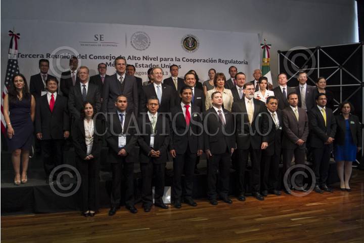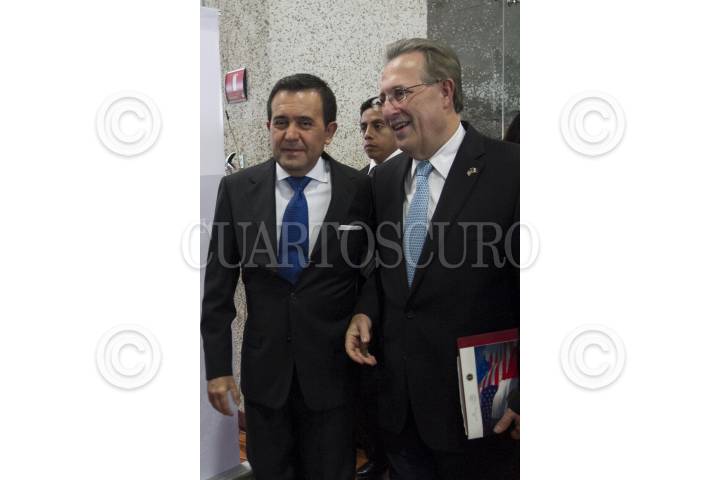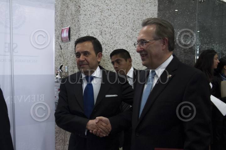 MÉXICO D.F., 15AGOSTO2013.- Ildefonso Guajardo, titular de la Secretaría de Economía y Anthony Wayne, embajador de Estados Unidos, durante la ceremonia inaugural de la 3ª Reunión del Consejo de Alto Nivel para la Cooperación Regulatoria entre México y Estados Unidos, en la Secretaría de Economía. FOTO: GUILLERMO PEREA /CUARTOSCURO.COM