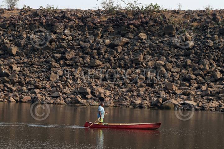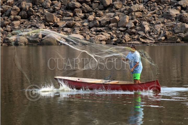 MIACATLÁN, MORELOS, 25JUNIO2024.- Un niño pesca con atarraya en la laguna El Rodeo, el retraso del temporal de lluvia redujo el nivel del agua. FOTO: MARGARITO PÉREZ RETANA/CUARTOSCURO.COM