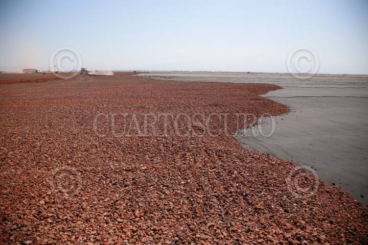 CIUDAD DE MÉXICO, 23MARZO2016.- Autoridades del Corporativo de Infraestructura del Grupo Aeroportuario de la Ciudad de México presentaron a los medios de comunicación el avance del %3 en la construcción del nuevo aeropuerto que prevé entre en operaciones el año 2020. Trabajadores continúan con la nivelación del terreno, cimentación, edificación del campamento. FOTO: CUARTOSCURO.COM
