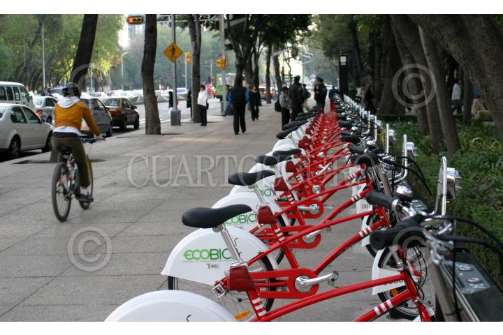 MÉXICO D.F., 16FEBRERO2010.- En la ciudad de México se implemento el programa ecobici, para incentivar el uso de la bicicleta como medio de transporte alternativo urbano, para miles de capitalinos con esto se pretende reducir importantes problemas como la contaminación, el tráfico, estrés, bajar costos de infraestructura vial, entre otros. FOTO: GUADALUPE CARRILLO/CUARTOSCURO.COM