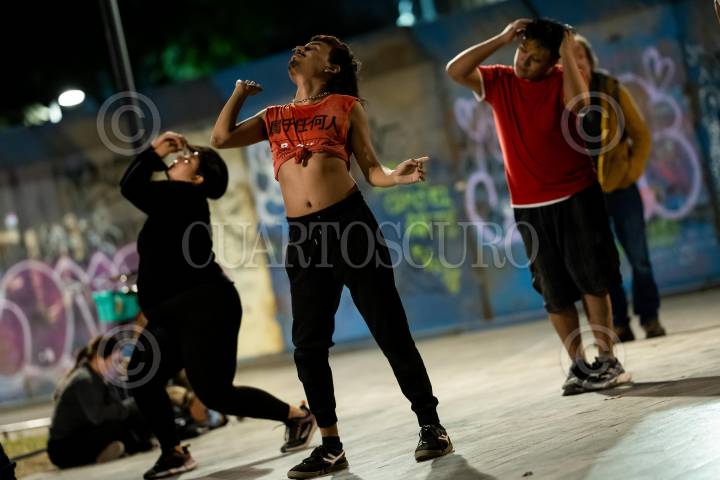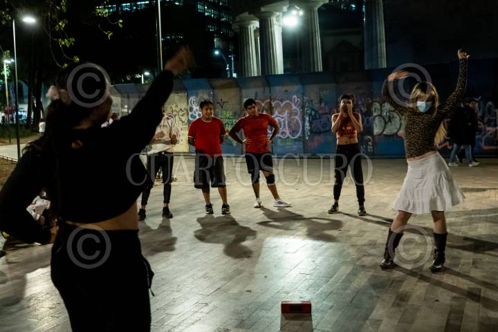 CIUDAD DE MÉXICO, 08ENERO2024.- Integrantes de las Casa Vogueras Kiki House Of Millan y Kiki House Of Cunty pertenecientes a las poblaciones LGBT+; Trans y no binario realizaron una práctica de Femme Soft and Cunt (variante del Vogue), en las inmediaciones de la Alameda Central, para la recaudación de fondos en apoyo a Brisa y su hermana tras el feminicidio de su madre Karla Patricia Cortes Cervantes, conductora de la aplicación UBER que fue asesinada el pasado 29 de diciembre de 2024. Fue a través de la feminidad de los cuerpos y el baile, las, los y les integrantes exigieron justicia y no impunidad por parte de las autoridades. FOTO: GALO CAÑAS/CUARTOSCURO.COM