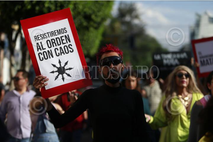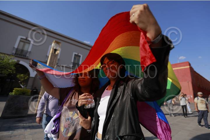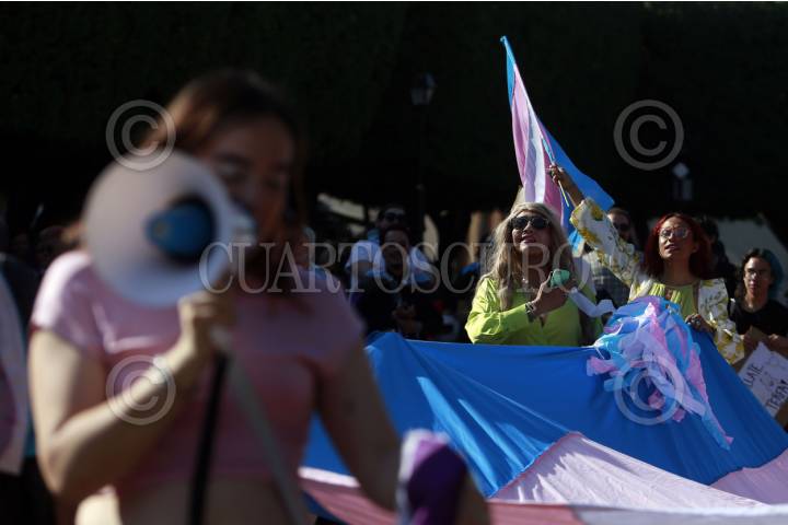 QUERÉTARO, QUERÉTARO, 22MARZO2025.- Decenas de personas participaron en la Cuarta Marcha Trans y No Binaria la cuál comenzó en el jardín Guerrero y culminó con una concentración, performance y micrófono abierto en plaza Constitución del centro de Querétaro FOTO: CÉSAR GÓMEZ/CUARTOSCURO.COM