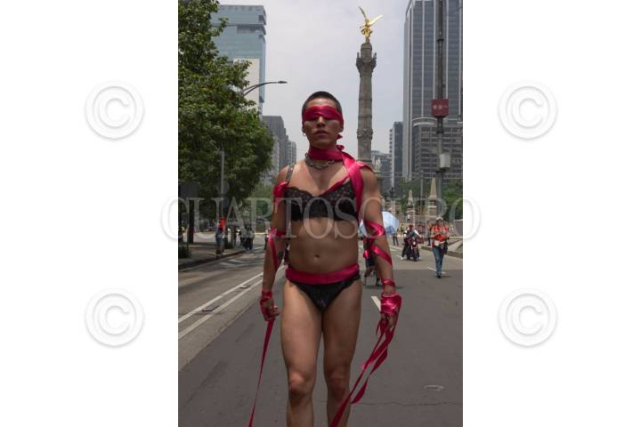 CIUDAD DE MÉXICO 12JULIO2025.- Participante de la Marcha No Binarie, con vestuario de protesta alusivo a la comunidad LGBTTIQ+, la cual partió del Ángel de la Independencia y culminó en el Bosque de Chapultepec. FOTO: ROGELIO MORALES /CUARTOSCURO.COM