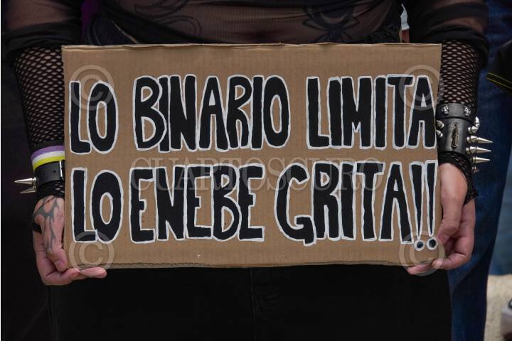 CIUDAD DE MÉXICO 12JULIO2025.- Aspectos de frase alusiva a la comunidad No Binaria, durante marcha que partió del Ángel de la Independencia y culminó en el Bosque de Chapultepec. FOTO: ROGELIO MORALES /CUARTOSCURO.COM