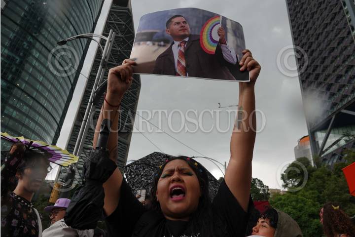 CIUDAD DE MÉXICO, 14JULIO2024.- Integrantes de la comunidad No Binarie marcharon para exigir justicia por Le Magistrade Ociel Baena a ocho meses de su transfeminicidio. La protesta dio inicio en el Ángel de la Independencia y termino en la Estela de Luz. FOTO: GRACIELA LÓPEZ/CUARTOSCURO.COM