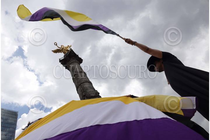 CIUDAD DE MÉXICO 12JULIO2025.- Por tercer año consecutivo se llevó acabo la Marcha No Binarie, que partió del Ángel de la Independencia y culminó en el Bosque de Chapultepec. FOTO: ROGELIO MORALES /CUARTOSCURO.COM