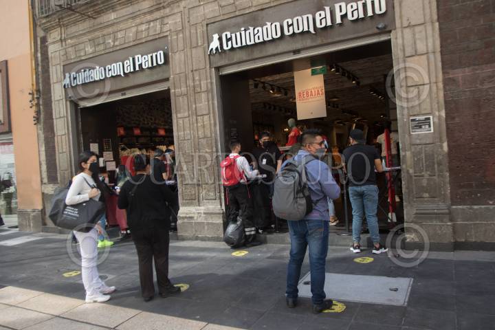 Hoy reabrieron los negocios no esenciales en los Centro Comerciales, esto a pesar de que la ciudad se encuentra en semáforo rojo, en algunas tiendas de ropa se observaron filas para acceder.