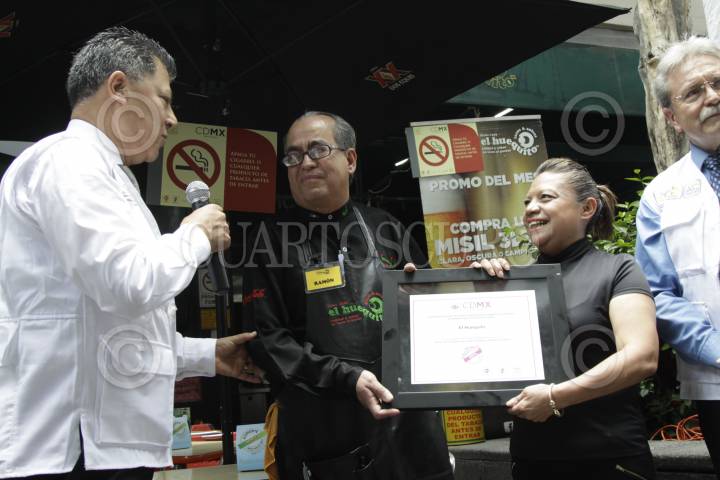 MÉXICO, D.F., 07ABRIL2014.- Armando Ahued, secretario de Salud del Distrito Federal, entregó reconocimientos a una cafetería y a dos restaurantes de la colonia Condesa por promover los espacios públicos 100% libres de humo de tabaco, esto en el marco del día mundial de la Salud. FOTO: DIEGO SIMÓN SÁNCHEZ /CUARTOSCURO.COM