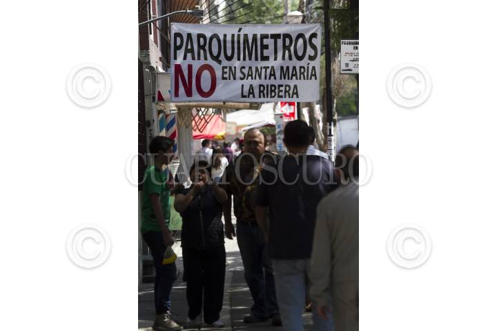 CIUDAD DE MÉXICO, 04FEBRERO2018.- Una manta en la calle de Salvador Díaz Mirón en al colonia Santa María la Ribera advierte el descontento de cualquiera intentona delegacional y del gobierno de la Ciudad de México de colocar parquímetros en sus calles. FOTO: MOISÉS PABLO /CUARTOSCURO.COM