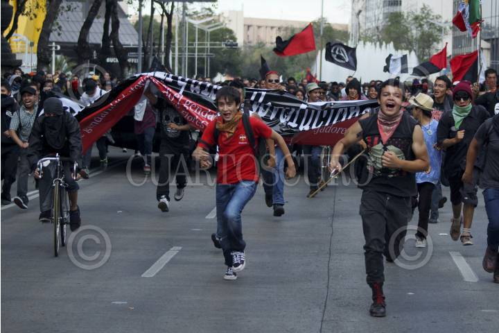 MÉXICO, D.F., 02OCTUBRE2012.- Jóvenes, organizaciones sociales y personas en lo individual agrupados en la UACM, IPN, UNAM, grupos Anarcopunks, etc; participaron en la marcha conmemorativa del 02 de octubre que se realizó desde la Plaza de las Tres Cultura en Tlatelolco al Zócalo capitalino. FOTO: ADOLFO VLADIMIR /CUARTOSCURO.COM
