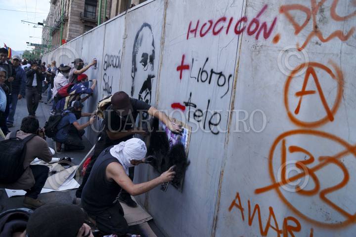 MÉXICO, D.F., 28DICIEMBRE2015.- Una mujer camina sobre la avenida Flores Magón en donde se lee una pinta en un muro "No se olvida", en referencia a la matanza de 1968. Aunque la frase esta muy ha doc para estos últimos días del año. FOTO: MOISÉS PABLO /CUARTOSCURO.COM